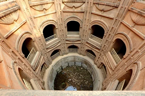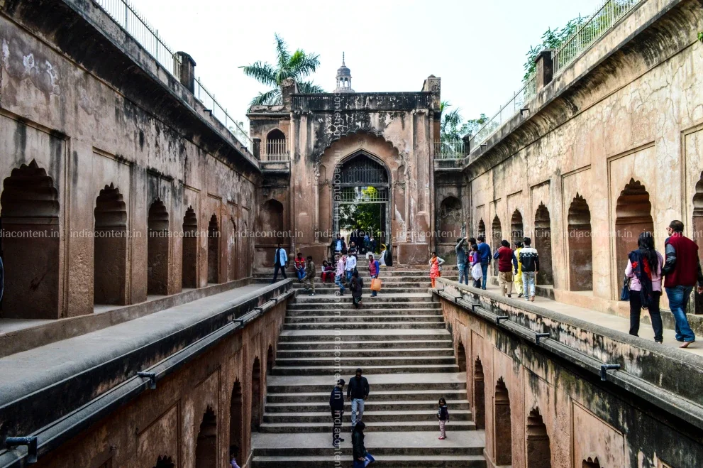 Water Reservoir: The Baoli is a stepwell used to collect water. It has a distinctive structure with steps leading down to the water, reflecting.